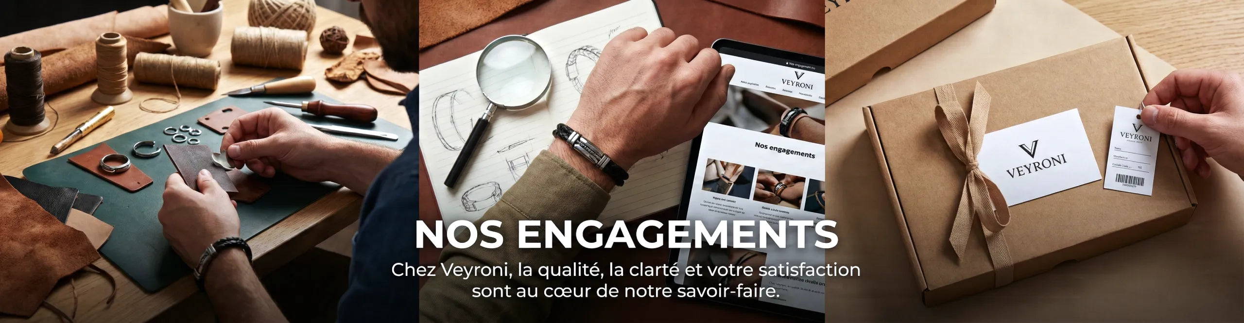 Notre objectif est que vous puissiez porter votre bracelet Veyroni jour après jour, sans mauvaise surprise, avec la sensation d’avoir choisi une pièce fiable et pensée pour durer.
