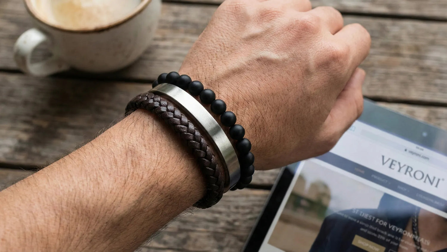 Veyroni est une bijouterie masculine née d’une idée simple : proposer des bracelets pour homme qui allient style, caractère et qualité, sans compromis. Chaque collection est pensée pour l’homme moderne, celui qui souhaite soigner les détails de son style sans en faire trop : cuir travaillé, acier inoxydable, perles, argent ou plaqué or, avec des designs allant du plus minimaliste au plus affirmé. Notre ambition est de vous offrir des bracelets que vous prenez plaisir à porter chaque jour, au travail comme en soirée, avec une expérience d’achat claire, fiable et agréable à chaque étape.